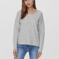 ONLY® Strickpullover, V-Ausschnitt, überschnittene Schultern, Für Damen 179073 LIGHT GREY