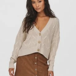 ONLY® Strickjacke, Knöpfe, V-Ausschnitt, Für Damen PUMICE STONE