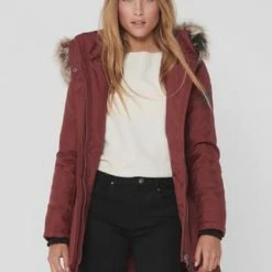 ONLY® Winterjcke, Kapuze, Kunstfell, Für Damen 207990 FIRED BRIC