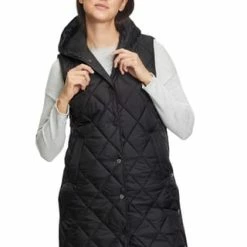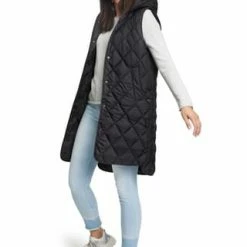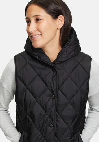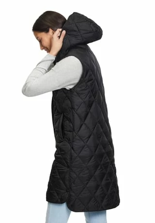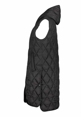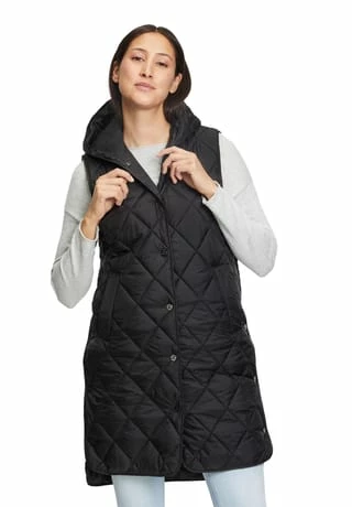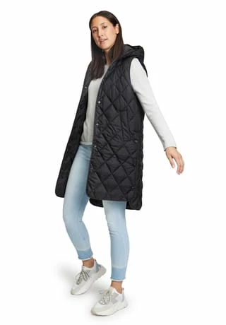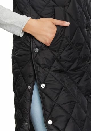 Das könnte Ihr neues Lieblingsteil werden! Diese modische Amber & June Longsteppweste aus einer leichten Polyesterware mit geknöpften Seitennaht- Schlitzen und Kapuze liegt voll im Trend.