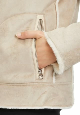 Trendy und kuschelig! Diese schöne Amber & June-Kunstfelljacke aus Polyester besticht durch seine kuschelige Innenseite, lässige Passform und zahlreichen Details.