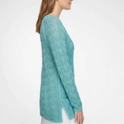 V-Pullover von ANNA AURA mit 1/1-Raglanarm. Mode-Maschen in softer Sommerqualität mit wunderschönem, luftigem Ajourmuster und Seitenpartien mit breiten Rippenstrukturen für einen leicht figurschmeichelnden Effekt sowie Seitenschlitzen. 55% Baumwolle, 45% Viskose. Mit Baumwolle aus kontrolliert biologischem Anbau und Viskose aus nachhaltiger Forstwirtschaft. Länge in Größe 42 ca. 68 cm. Dieser V-Pullover ist maschinenwaschbar.