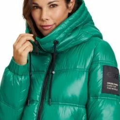Dieses modische UND nachhaltige Highlight muss man einfach haben! Die wunderschöne Wintersteppjacke in leichter A-Form mit modisch großzügiger Kapuze und Seitenschlitzen mit schwarzen Reißverschlüssen ist aus recycelten Matrerialien und die wärmende Wattefüllung wird aus recycelten PET-Flaschen gewonnen. Besonders schön ist das in Aquafarben bedruckte Innenfutter! So sind Sie modisch und umwelbewußt angezogen!