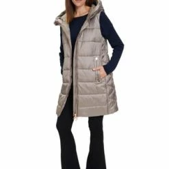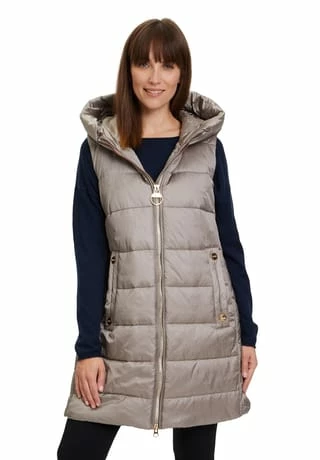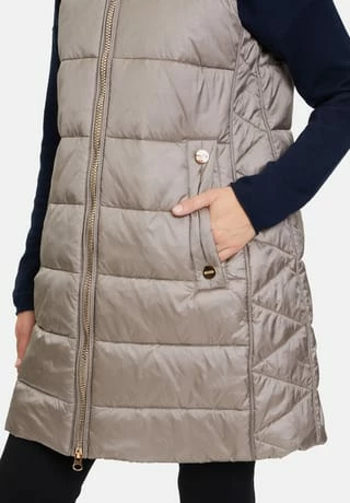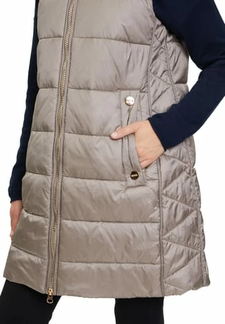 Sind Sie auf der Suche nach etwas Besonderem?Mit dieser wunderschönen langen Steppweste mit der feminen Kapuze haben Sie es gefunden. Das modische Teil in eleganter A-linie macht aus jedem Winteroutfit einen Hingucker.
