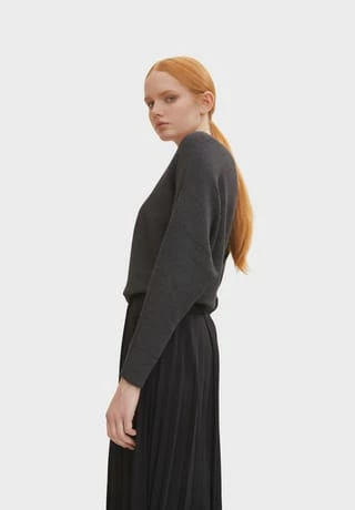 VIA APPIA -DUE- Pullover Dezenter Pullover Mit Gestreiftem Allover-Muster Grau Melange/ Ecru