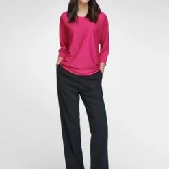 Rundhals-Pullover von EMILIA LAY mit 3/4-Kimonoarm. Feinstrick in der Powerfarbe Pink mit Glitzer-Effekt durch metallisiertes Garn ? ein moderner Look, der Sie strahlen lässt! Legerer Style mit Rollkante am Ausschnitt und Tubularabschlüssen. 75% Viskose, 25% Metallfaser. Länge in Größe 42 ca. 65 cm. Dieser Rundhals-Pullover ist maschinenwaschbar.