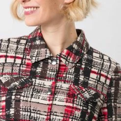 Dieser chice Blazer im Karo-Look erobert jetzt in bequemer Jerseyausführung ihren Kleiderschrank. Die figurumspielende Passform unterstreicht das modische Gespür für das Besondere. Sie zeigt sich mit Patten, Saumbund, femininen Kragen, Eingrifftaschen und Druckern.