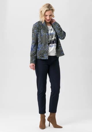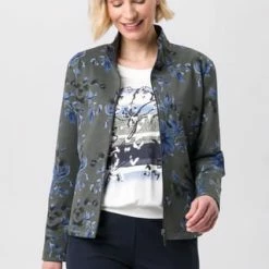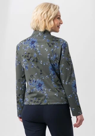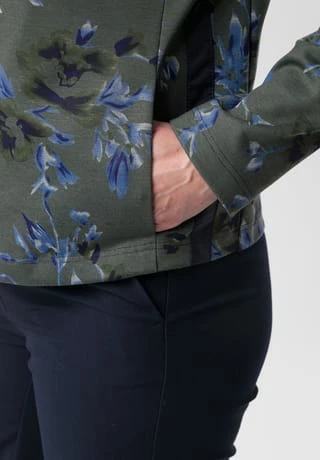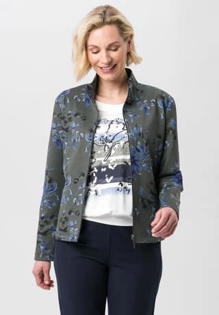 Stilsicherheit und optimale Bewegungsfreiheit bietet Ihnen diese moderne leichte Jacke aus trageangenehmen Jersey. Das farbharmonische Dessin steht für die feminine Optik. Modische Akzente setzen sportive seitliche Kontraststreifen. Mit Stehbund, Nahttaschen und modernem 1-Wege-Reißverschluss.