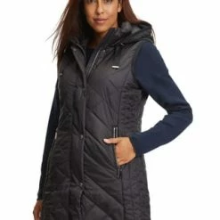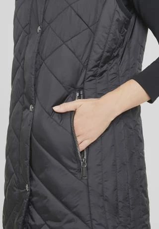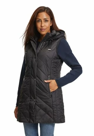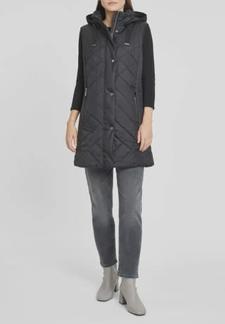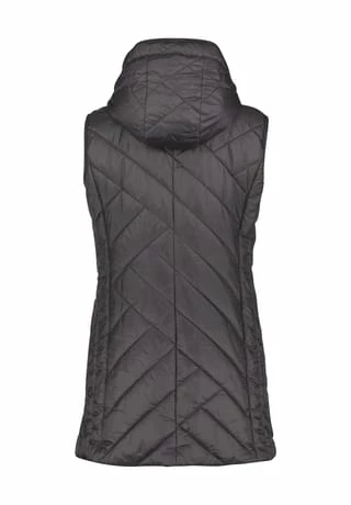 Damen-Steppweste von GIL BRET: Mit ihrer attraktiven Steppung fügt sich diese Weste perfekt in modische Outfits ein. Die Steppweste hat ein unifarbenes Design und einen bequemen Schnitt. Das Modell ist ausgestattet mit einem Stehkragen, einem Zweiwegereißverschluss und schützt mithilfe der Kapuze vor Wind und Regen.