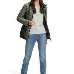 Ein absolutes Lieblingsstück! Modische Sandwich Steppjacke von Gil Bret im sportiven Materialmix aus Polyester-Polyamidware mit Neoprenjersey gepatcht und mit hochwertiger Sorona-Daunenersatzfüllung. Breite Logo-Bänder, Metallzutaten und Kragen sowie Futter in schwarz sorgen für das gewisse Etwas.