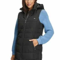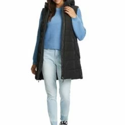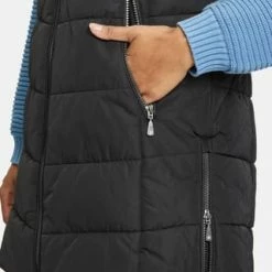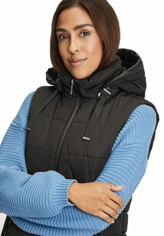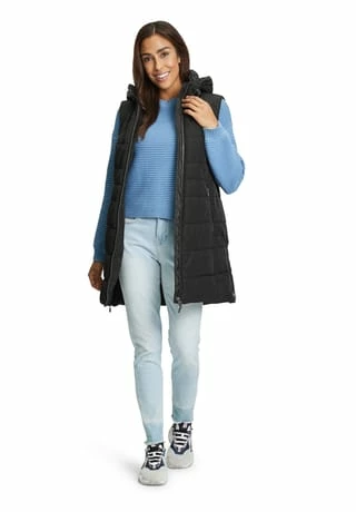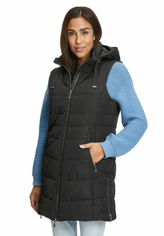 Diesen Trend dürfen Sie nicht verpassen! Lange, trendige und leicht taillierte Wattesteppweste der Marke Gil Bret aus Polyester mit dekorativen Schlitzen in der Seitennaht und einer abnehmbaren Kapuze.