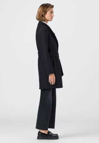 Stylisches Outdoor Piece in zeitlosem Design: HALLHUBER Wollmantel mit asymmetrischer Druckknopf-Verschlussleiste und kleinem Stehkragen. Die Eingrifftaschen sind unsichtbar in die Teilungsnähte eingearbeitet, der Bindegürtel akzentuiert die Taille. Modell aus hochwertiger, mulesing-freier Schurwolle-Qualität von unserem italienischen Partner Manteco.think forward. Mulesing ist eine schmerzhafte Methode, um Schafe vor Fliegenbefall zu schützen. HALLHUBER befindet diese Verfahrensweise als nicht ökologisch vertretbar, weshalb bei der Auswahl von Merinowolle darauf geachtet wird, sie von Zulieferern zu beziehen, die kein Mulesing betreiben.