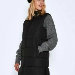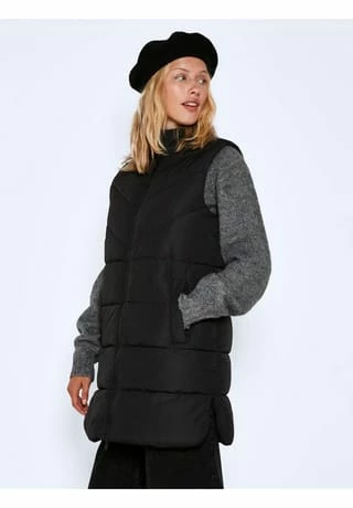 Lange Weste Hoher Kragen Ärmellos Zwei-Wege-Frontreissverschluss Einschubtaschen Schlitzdetail an den Seiten Wattiert Regular Fit