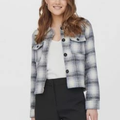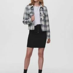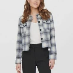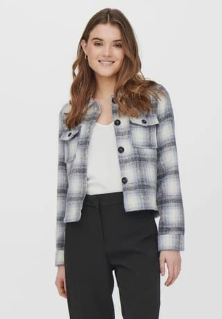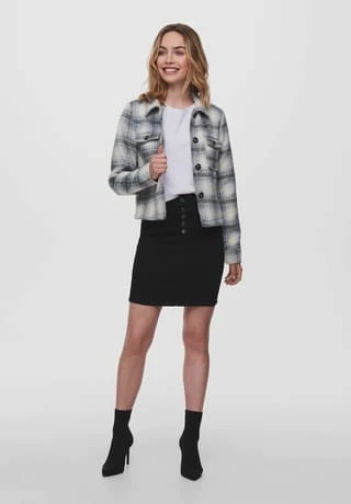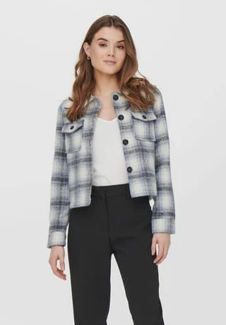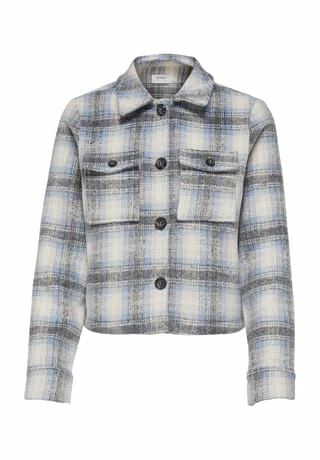 – Kurzjacke mit Karos- Knöpfe vorn- 2 Brusttaschen mit Patten- Jacke mit Wollanteil- Länge: 56 cm in Größe S- Das Model trägt Größe S