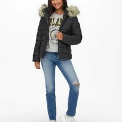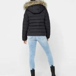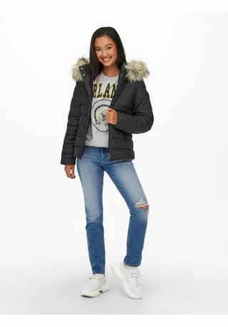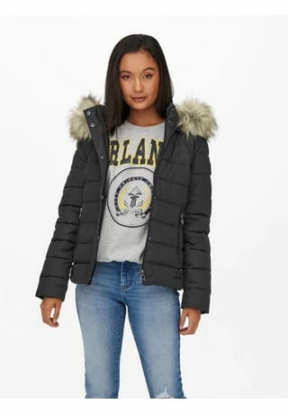 Einfarbige Steppjacke Kapuze mit abnehmbarem Kunstfellrand 2 Taschen mit Reissverschluss vorn Lange Ärmel Laenge: 62 cm in Groesse S Das Model traegt Groesse S