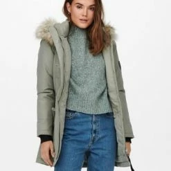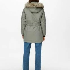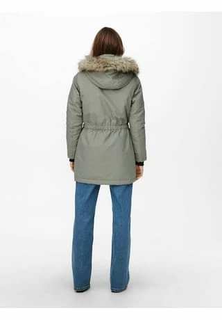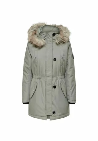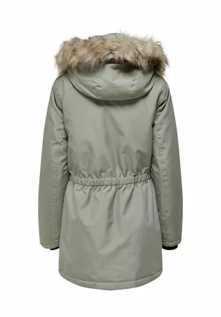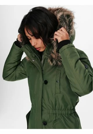 Winterparka Kapuze mit abnehmbarem Kunstfellrand Verdeckter Verschluss vorn Elastisch in der Taille 2 Vordertaschen mit Patten Ripp an den Ärmeln Druckknopf auf der Brust Laenge: 83 cm in Groesse S Das Model traegt Groesse S