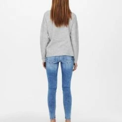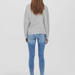 – Langer, einfarbiger Strickpullover- V-Ausschnitt- Lange Ärmel- Stoff mit Stretchanteil- Länge: 63 cm in Größe M- Das Model trägt Größe S