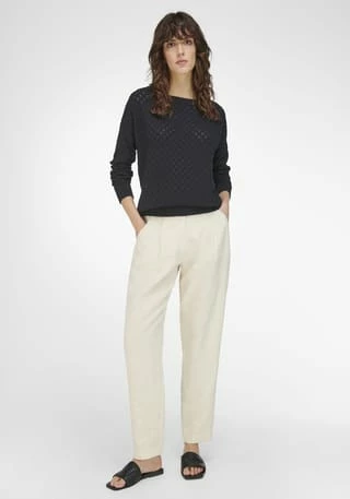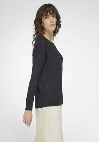 Pullover von PETER HAHN in legerem Style mit leichtem U-Boot-Ausschnitt, überschnittener Schulter und 1/1-Arm. Angesagte Strick-Strukturen mit luftigem Ajourmuster, gedoppelte Rippenabschlüsse und softe SUPIMA-Baumwolle machen diesen Pullover zum Star der neuen PETER HAHN-Strick-Kollektion. 100% Baumwolle. Länge ca. 58 cm. Dieser Pullover ist maschinenwaschbar.