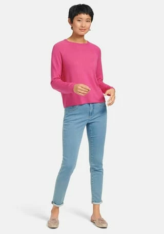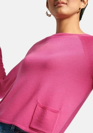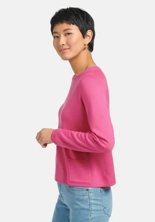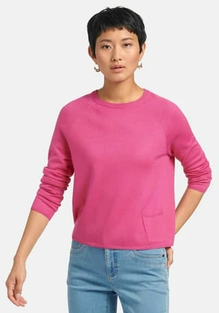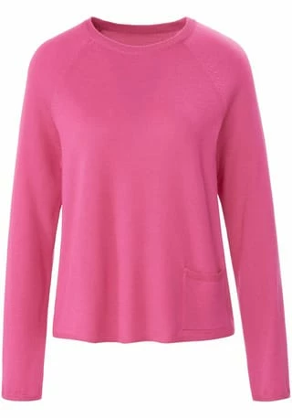 Rundhals-Pullover von PETER HAHN mit 1/1-Raglanarm. Etwas kürzerer Boxy-Style mit gedoppeltem Abschluss am Ausschnitt, einer kleinen, aufgesetzten Tasche und Rippenabschlüssen. Ideal für Outfits im Lagen-Look – tragen Sie darunter eine längere Bluse oder ein Long-Shirt und Ihr Outfit ist komplett! Länge ca. 55 cm. 100% Schurwolle. Dieser Rundhals-Pullover ist maschinenwaschbar.