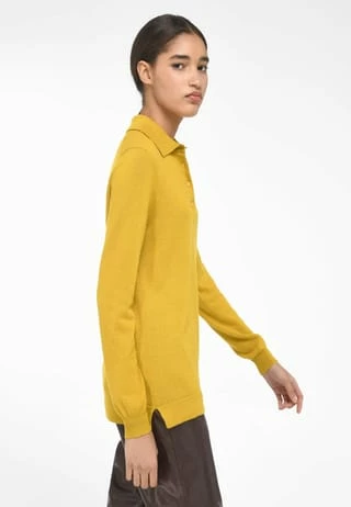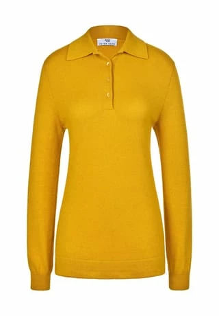 Polo-Pullover von PETER HAHN – Modell PIA: der sportive Klassiker mit 1/1-Arm! Vorteilhafte Länge mit kurzen Seitenschlitzen. Mit Ton-in-Ton-Knöpfen an der Knopfleiste. 55% Seide, 45% Kaschmir. Länge ca. 65 cm. Dieser Polo-Pullover ist maschinenwaschbar.