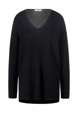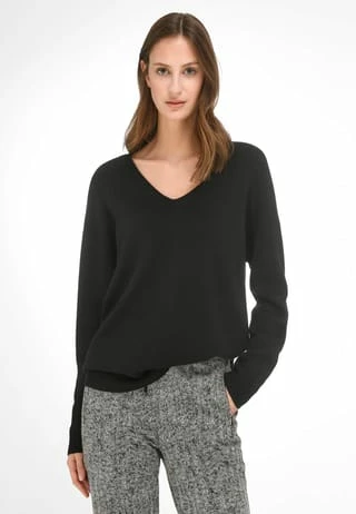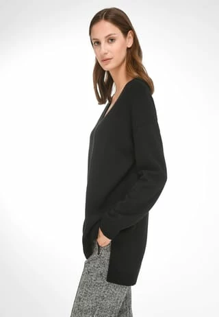 V-Pullover von PETER HAHN mit 1/1-Arm. Der legere Oversized-Style mit überschnittener Schulter, Seitenschlitzen und etwas kürzerem Vorderteil schmeichelt Ihrer Figur. Weich fallend, sanft auf der Haut und sehr gepflegt aus hochwertigstem Feinstrick in 41% Viskose, 28% Polyamid, 19% Wolle, 12% Baumwolle, mit Viskose aus nachhaltiger Forstwirtschaft. Die Wolle ist zertifiziert nach einem unabhängigen Tierwohlstandard. Länge ca. 72 cm. Dieser V-Pullover ist maschinenwaschbar.
