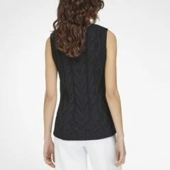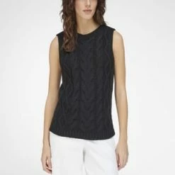 Pullunder von PETER HAHN mit leichtem U-Boot-Ausschnitt. Dieses modische Must-have ist garantiert ganzjährig im Einsatz – im Sommer als Stricktop direkt auf der Haut, in der Übergangszeit als Pullunder mit Shirt oder Bluse darunter. Aufwendig gestrickt mit bildschönem Zopfmuster, Linksstrick-Abschlüssen an Ausschnitt und Armausschnitt sowie Rippenabschluss am Saum. In 100% Baumwolle. Länge ca. 55 cm. Dieser Pullunder ist maschinenwaschbar.