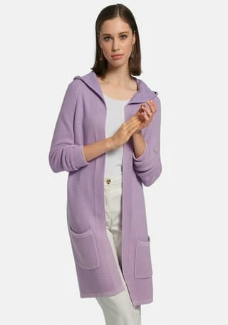 Strickjacke von PETER HAHN mit 1/1-Raglanarm und Kapuze. Extralang und lässig in weitem, locker fallendem Style ohne Verschluss in Links-links-Strick. Durch das Waschverfahren erhalten die Farben ihre modische Optik mit dezenten Wash-out-Effekten. 100% Baumwolle. Länge ca. 80 cm. Diese Strickjacke ist maschinenwaschbar.