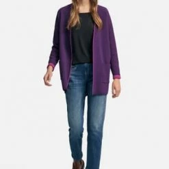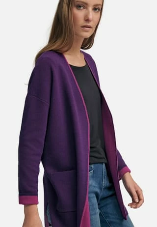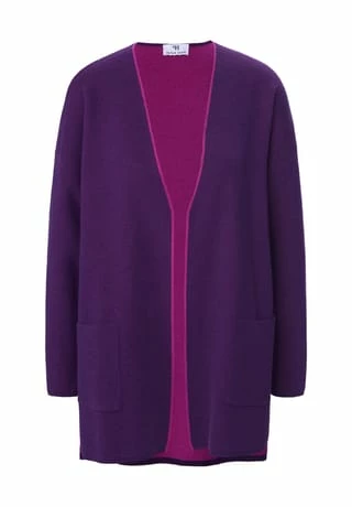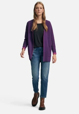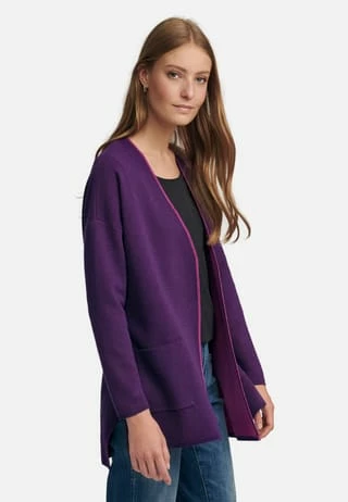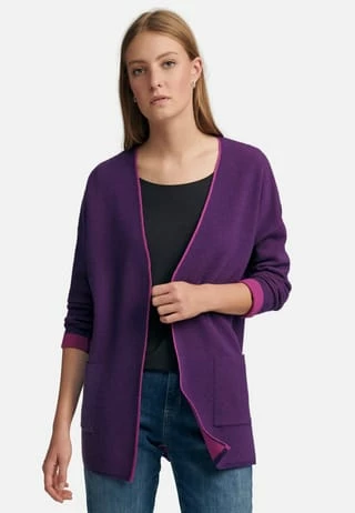 Strickjacke von PETER HAHN mit 1/1-Arm. Erstklassiger Feinstrick aus edler, wärmender Schurwolle in sehr aufwendiger, plattierter Verarbeitung mit unterschiedlichen Farben innen und außen. An den vorderen Kanten ist die Innenfarbe als schmaler Kontraststreifen sichtbar. Die locker fallende Form umschmeichelt Ihre Figur vorteilhaft und passt zu vielen Outfits. Verschlussloser Style mit 2 aufgesetzten Taschen. 100% Schurwolle. Länge ca. 75 cm. Diese Strickjacke ist maschinenwaschbar.