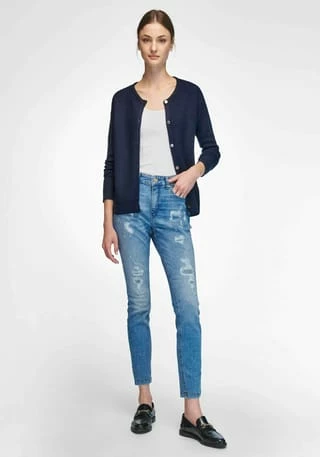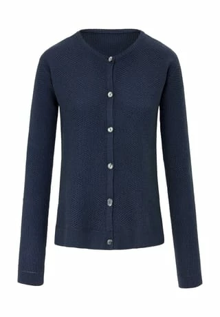 Strickjacke von PETER HAHN: gepflegt, sportiv, hochwertig! Meisterhaft gestrickt mit feinen Waffel-Strukturen und gerippten Abschlüssen. Das feine Merino-Garn in exzellenter Qualität stammt vom renommierten italienischen Garn-Spezialisten BIELLA YARN. Gerade Form mit Rundhals-Ausschnitt und echten Perlmuttknöpfen. 100% Schurwolle. Länge ca. 58 cm. Diese Strickjacke ist maschinenwaschbar.