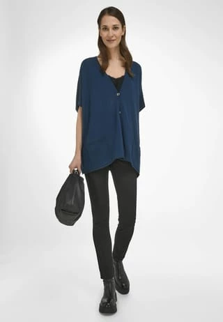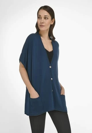 Strickweste von Peter Hahn im Oversized-Style mit überschnittener Schulter, aufgesetzten Taschen und Perlmuttknöpfen. Strick-Basic mit hohem Mode-Potenzial ? besonders weich und fein aus hochwertiger Merino-Wolle. Mit Garnen von BIELLA YARN. 100% Schurwolle. Länge ca. 68 cm. Diese Strickweste ist maschinenwaschbar.