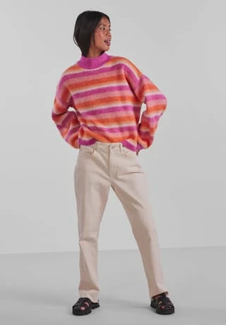 SECOND FEMALE Pullover, Rundhals, Streifen, Für Damen LAUREL GREEN