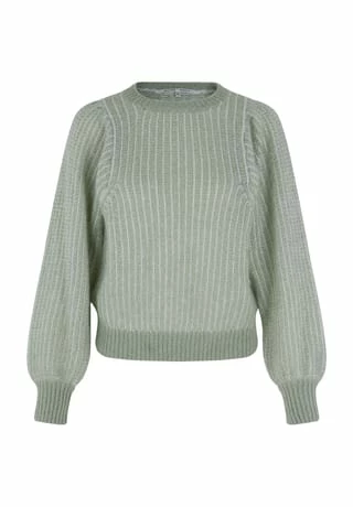 SECOND FEMALE Pullover, Stehkragen, Ballonärmel, Zweifarbiges Design, Für Damen NEW TOBACCO BROWN