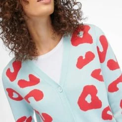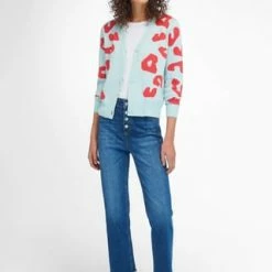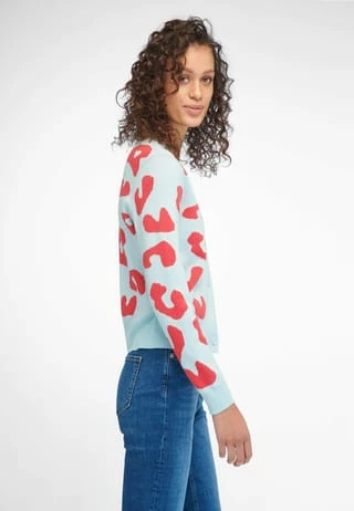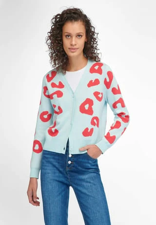 Strickjacke von UTA RAASCH mit 1/1-Arm, V-Ausschnitt und 3-Knopf-Verschluss. Diese Strickjacke besticht durch sein Strickmuster im Leo-Design. 89% Baumwolle, 11% Polyamid. Länge ca. 54 cm. Diese Strickjacke ist maschinenwaschbar.