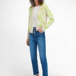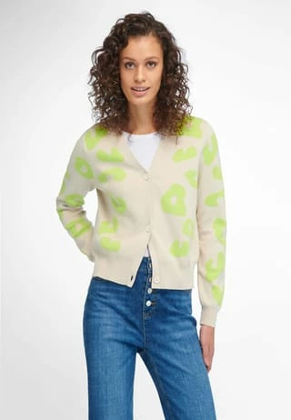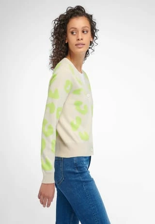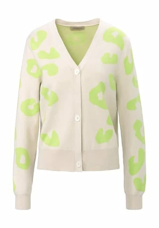 Strickjacke von UTA RAASCH mit 1/1-Arm, V-Ausschnitt und 3-Knopf-Verschluss. Diese Strickjacke besticht durch sein Strickmuster im Leo-Design. 89% Baumwolle, 11% Polyamid. Länge ca. 54 cm. Diese Strickjacke ist maschinenwaschbar.