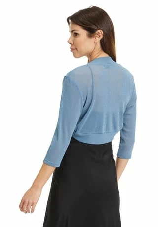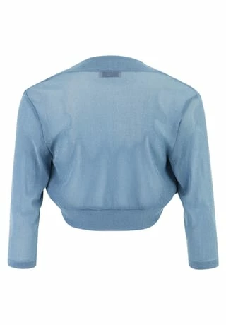 Ein absolutes Basic Must-Have! Diese 3/4 Arm Bolero-Jacke mit Kragen liegt nah am Körper an und lässt ist somit sehr gut zu einem Kleid kombinieren. Sie lässt sich insbesondere für festliche Anlässe perfekt tragen.