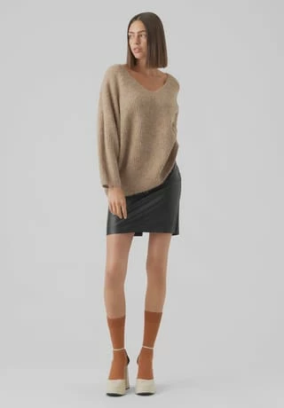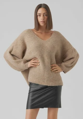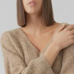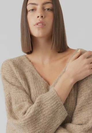 der tiefe V-Ausschnitt verleiht dem Pullover einen femininen Charme